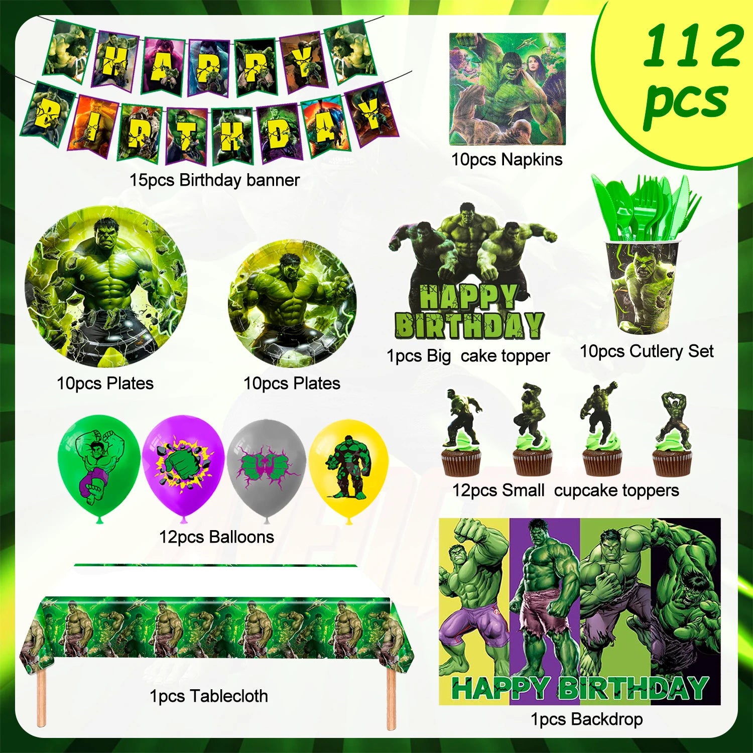 Verwandelt jeden Kindergeburtstag in ein grünes Abenteuer! Dieses umfangreiche 112-teilige Hulk Deko Set enthält alles, was ihr für eine unvergessliche Feier braucht. Von farbenfrohen Ballons und Girlanden bis hin zu Tellern, Bechern und Servietten – jedes Teil ist im klassischen Hulk-Design gestaltet. Perfekt für Superhelden-Fans, die ihre Party zum Leben erwecken möchten. Einfach auspacken, dekorieren und feiern!