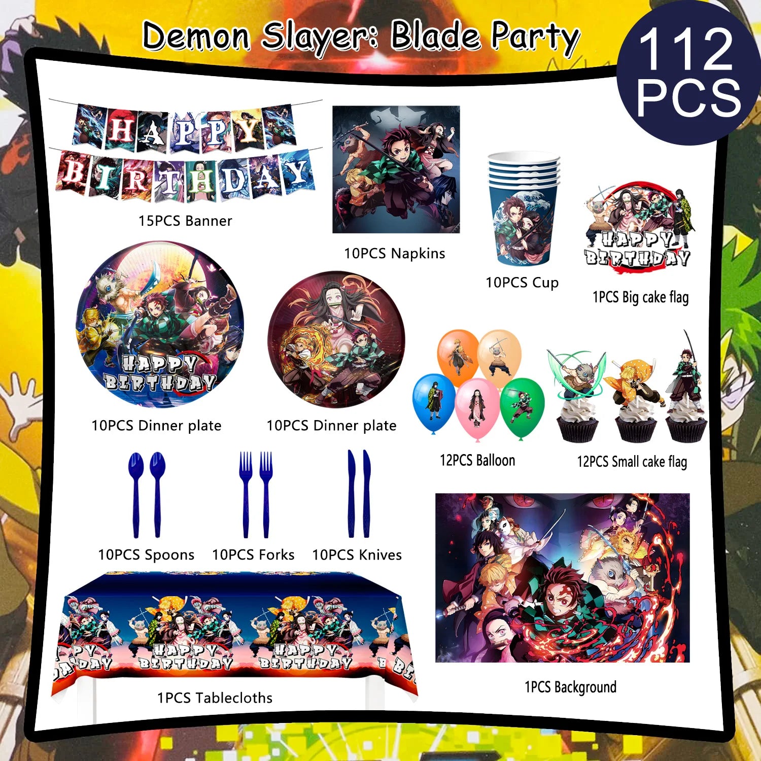 Feiere deinen besonderen Tag mit dem bunten Demon Slayer Deko-Set! Dieses Set mit 112 Teilen bringt den spannenden Flair der beliebten Serie direkt zu deiner Party. Von Bannern über Becher bis zu Partyhüten – alles, was du brauchst, um deine Feier in eine coole Demon Slayer Welt zu verwandeln. Perfekt für Fans, die mit Spaß und Action ihren Geburtstag unvergesslich machen wollen!