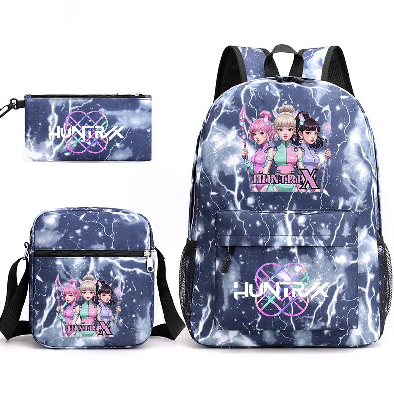Dieses 3-teilige Hunterix K-POP Demon Hunters Taschen-Set bringt Style und Funktionalität perfekt zusammen! Der coole Rucksack bietet viel Platz für deine Abenteuer, die Federtasche hilft dir, Stifte und Utensilien ordentlich zu verstauen, und die zusätzliche Tasche sorgt für extra Stauraum. Perfekt für Fans, die ihre Lieblingswelt kreativ und organisiert erleben wollen!