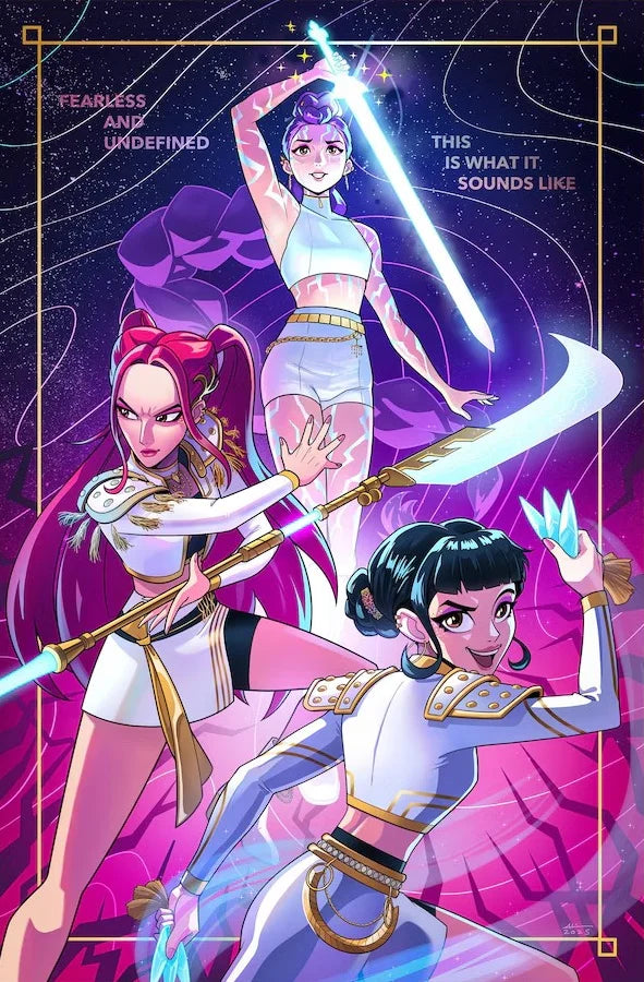 Tauche ein in die düstere Welt der Demon Hunters mit diesem coolen Kunstdruck! Perfekt für alle KPop-Fans und Liebhaber von mystischen Designs – dieser Poster bringt eine Prise Abenteuer und Spannung an deine Wand. Mit seinem einzigartigen Huntrx-Artwork schaffst du dir einen Statement-Platz, der garantiert Blicke auf sich zieht. Ideal zum Verschenken oder um dein Zimmer in eine epische Galerie zu verwandeln. Lass dich von der dunklen Ästhetik verzaubern!