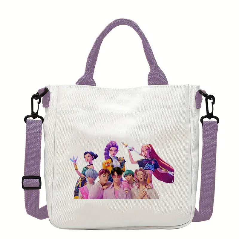 Diese K-Pop Demon Hunters Canvas Tasche bringt deinen Style spielerisch auf das nächste Level. Robust und geräumig begleitet sie dich sicher durch den Alltag – ob Schule, Job oder Freizeit. Mit ihrem coolen Design zeigst du deine Liebe zu den Demon Hunters und bleibst dabei super trendy und praktisch unterwegs. Ein echter Hingucker, der Spaß macht!