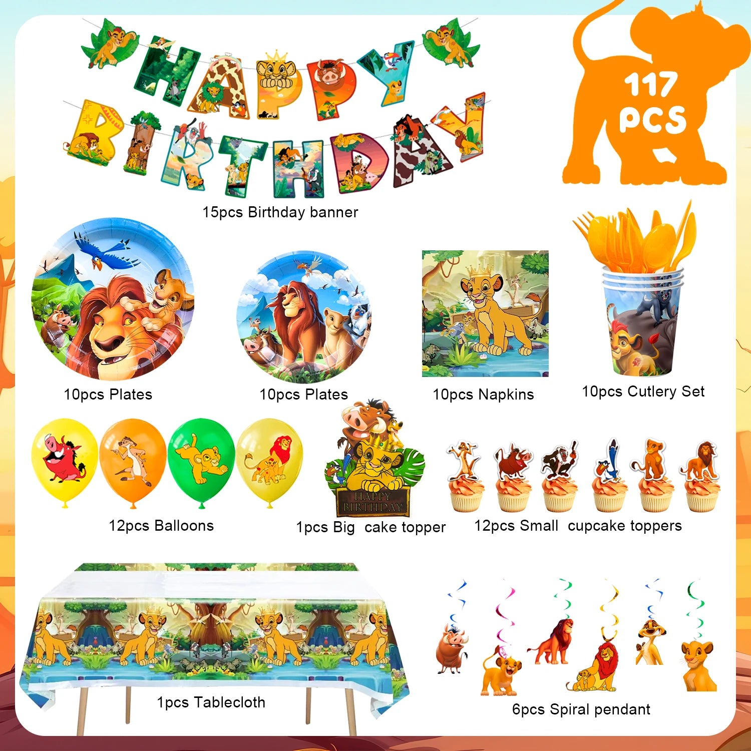 Feiere den Kindergeburtstag mit dem König der Löwen Deko Set – 117 bunte Teile voller Abenteuer! Von wilden Tiermotiven bis zu festlichen Girlanden bringt dieses Set Spaß und Dschungelstimmung in jede Party. Einfach zu dekorieren, macht es jeden kleinen Löwen glücklich und sorgt für unvergessliche Momente!