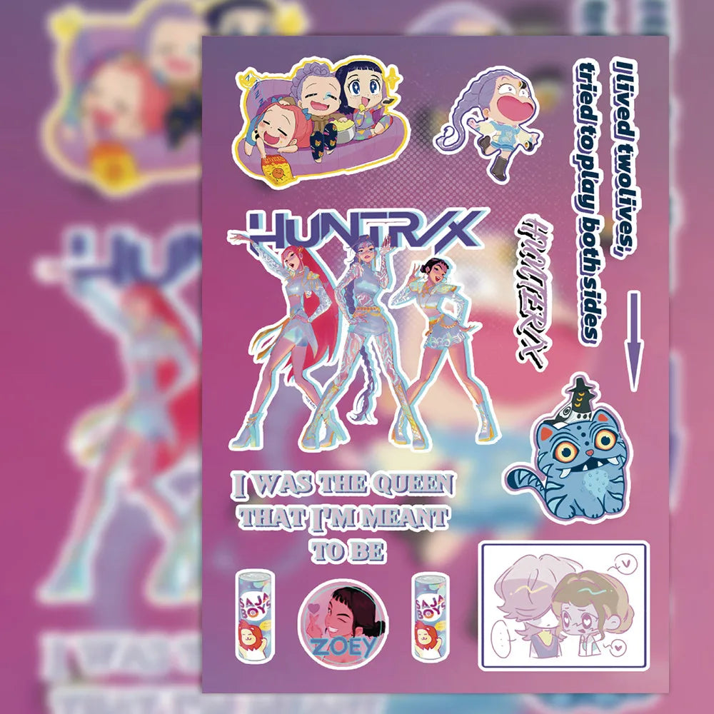 Verleihe deinen Lieblingsgegenständen mit diesen farbenfrohen KPop Demon Hunter Stickern einen spielerischen und lebendigen Look! Das Set umfasst 8 bunte Aufkleber, die perfekt sind, um Laptop, Handy oder Notizbücher individuell und frech zu gestalten. Einfach anzubringen und rückstandslos zu entfernen – so zeigst du auf kreative Weise deine Leidenschaft für den coolen Demon Hunter Style.