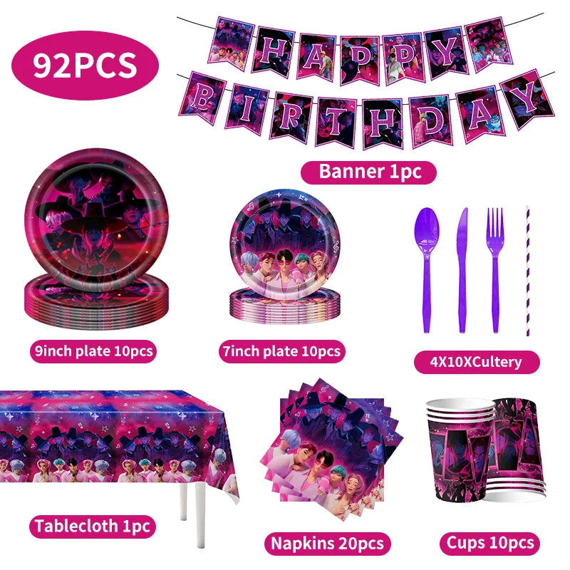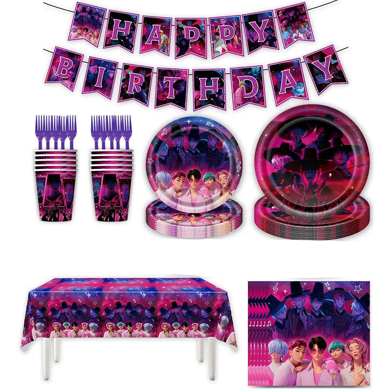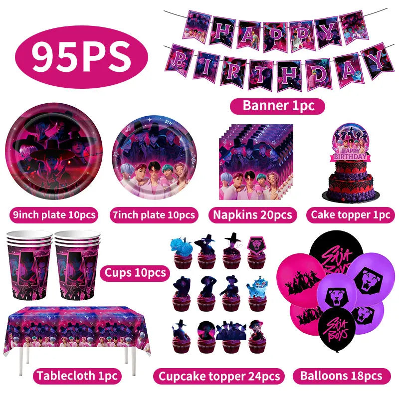Verwandle jeden Geburtstag in ein episches Abenteuer mit unserer Kpop Demon Hunter Saja Boys Geburtstags Deko! Von farbenfrohen Tellern über bunte Luftballons bis hin zu vielen weiteren Party-Essentials – wähle aus über 40 verschiedenen Artikeln und kreiere die perfekte Feier für echte Fans. Egal ob Girlanden, Servietten oder Tischdekorationen: Alles, was du brauchst, um deine Party zum Highlight zu machen, findest du hier. Lass die Feier beginnen!
