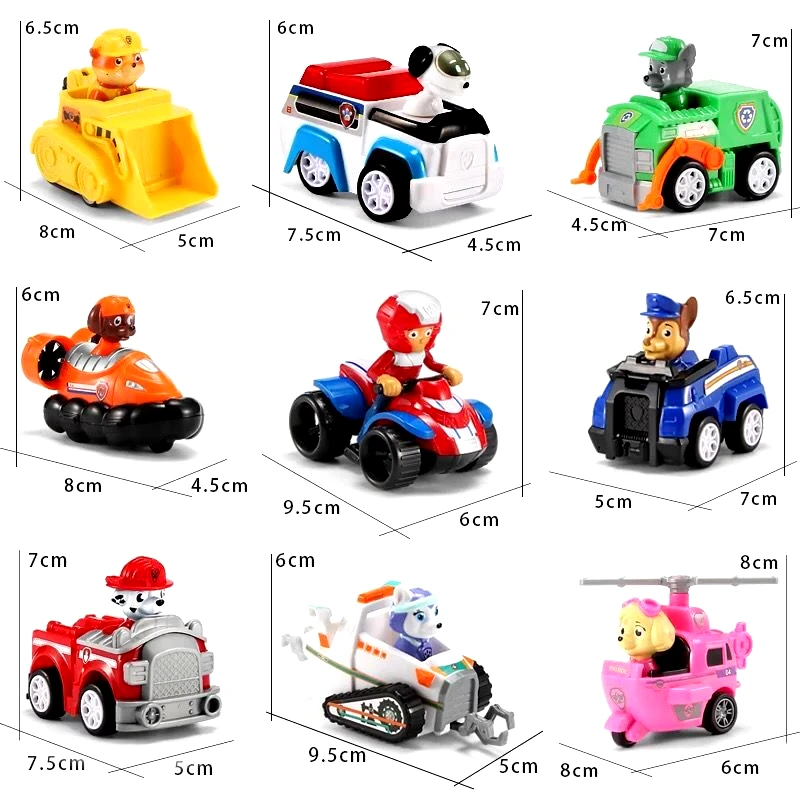Die ca. 8x8.8cm großen Paw Patrol Autos aus Kunststoff sehnen sich nach einem neuen Besitzer.